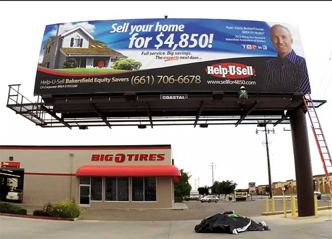 As you prep for the Summer / Fall market, I hope you’ll consider billboards again.  It might just be the kick your marketing needs to crank up your listing inventory!  If  you click on the photo below, you will taken to a short time-lapse video of this board’s installation.  While you are there, why not ‘Like’  Help-U-Sell Bakersfield Equity Savers’ page?